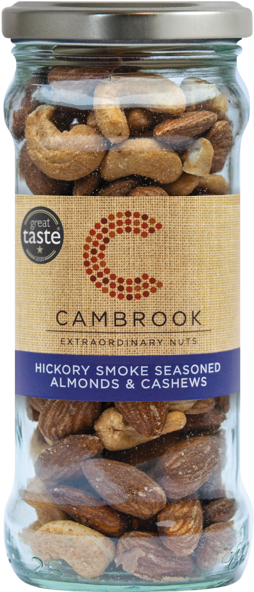 DescriptionBaked Hickory Smoke Almonds & Cashews in Jar - Cambrook - 180g