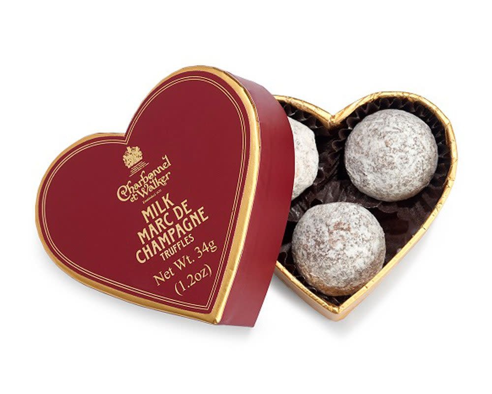 DescriptionRed Heart Box with Milk Marc de Champagne Truffles - Charbonnel et Walker - 34g