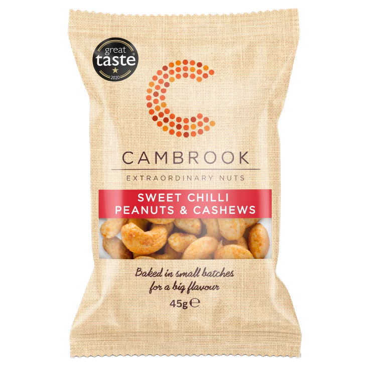 DescriptionBaked Sweet Chilli Peanuts & Cashews - Cambrook - 80g