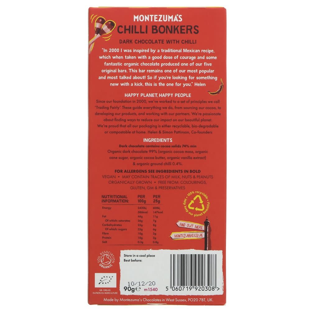 DescriptionMontezuma's Chilli Bonkers" Dark Chocolate & Chilli Bar - 90g