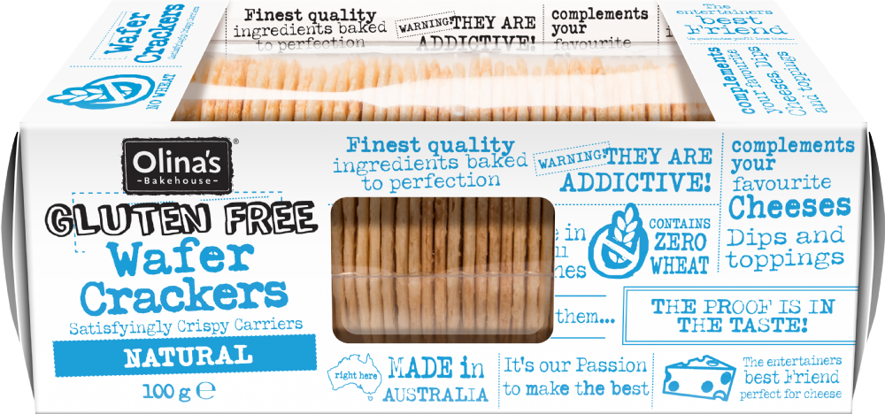 DescriptionGF. Wafer Crackers - Gluten Free - Olina's Bakehouse - 100g