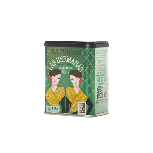 Las Hermanas Pimento de la Vera Agridulce is an imported bittersweet paprika from La Vera, Southwestern Spain.