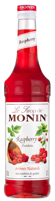 Monin Sirop Framboise is an iconic french raspberry syrup. Bright pink-red coloured, it has on its nose some ripe raspberry and is slightly acidic for a great raspberry candy taste.